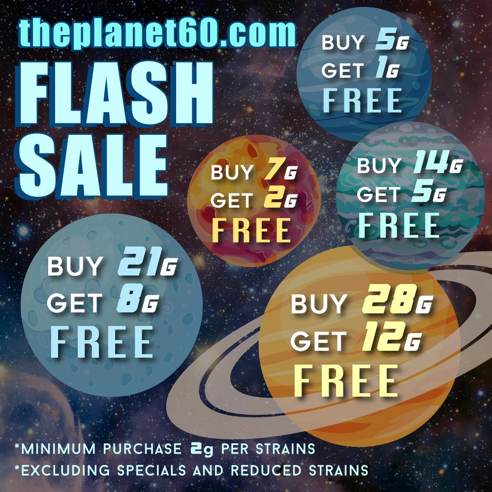The Planet 60 Cannabis Dispensary in North York is a 24 hour retailer in the Toronto Area. Our cannabis store offers quality strains at the best prices ever with amazing specials and deals. We also carry a wide range of delicious marijuana edibles, shatter, THC vape pens, pre-rolls, and CBD oils. If you’re looking for a weed shop near you in North York, come visit us today.